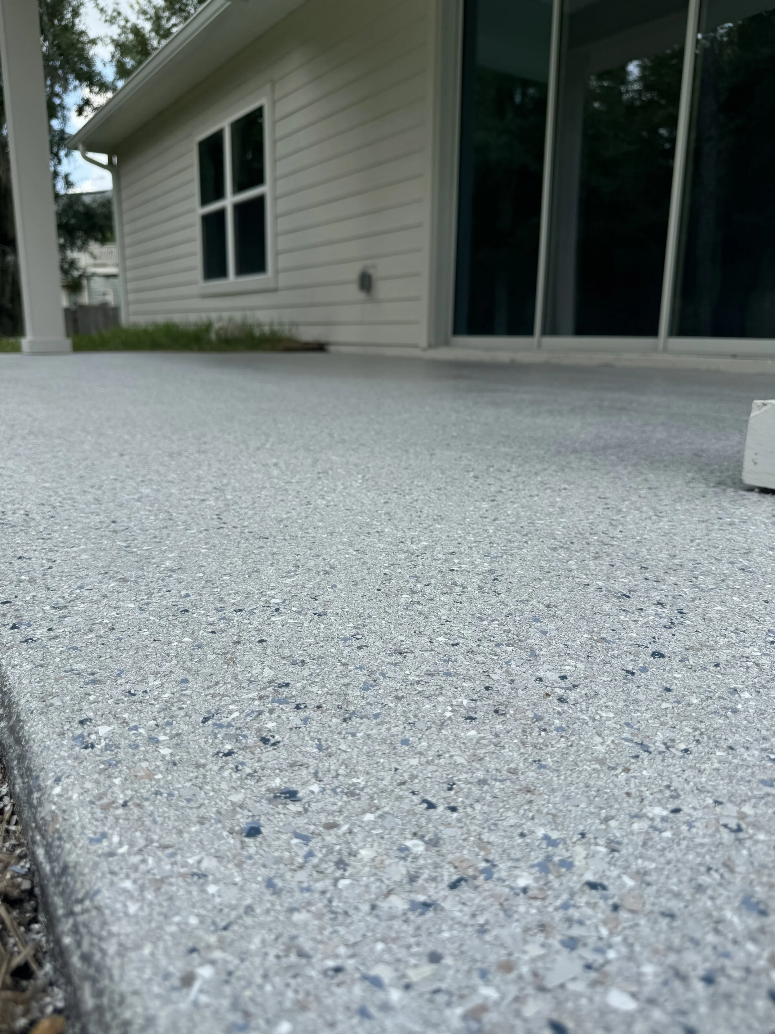 100% solids epoxy is considered to be the industry standard for high end flooring due to the fact that it is proven to be 4xs stronger than concrete. Our products have no V.O.C, no flammability, and can be applied as thick or as thin as you need.